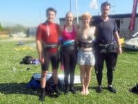 Helen White (C) and David Fischer (C) try out the Oxford kit while Torben (O) and Jeki (O) busy themselves on the shore.